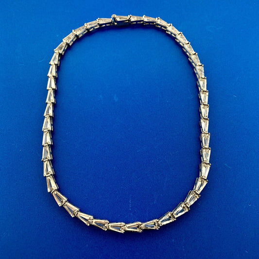 Vintage Mid Century Sterling Silver 925 Trilliant White Sapphire Choker Necklace