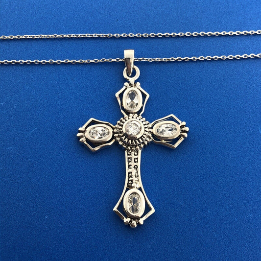 Designer Sterling Silver 925 Cubic Zirconia Religious Cross Statement Necklace