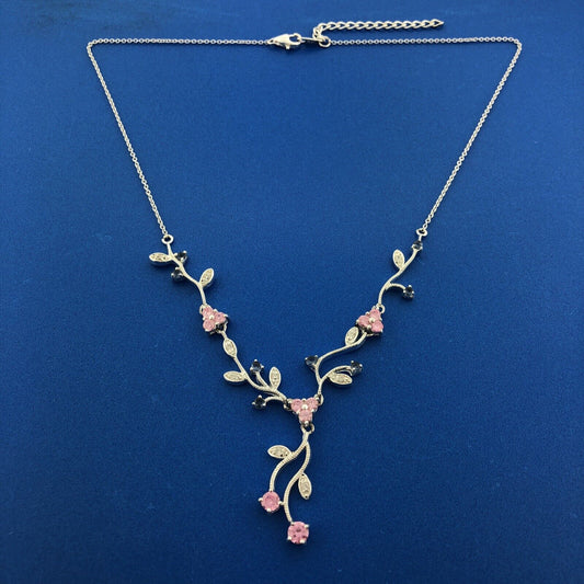 Exquisite Sterling Silver 925 Blue Pink White CZ Floral Scroll Drop Necklace