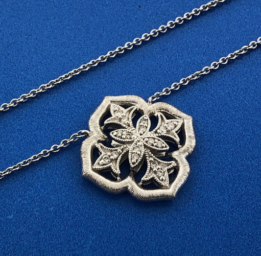 Gabriel & Co 925 Sterling Silver Diamond 3 Dimensional Snowflake Flower Necklace