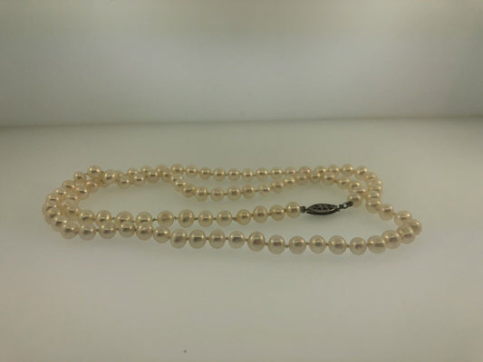 Vintage Sterling Silver 925 Pearl Hand Knotted Filigree Clasp Bridal Necklace