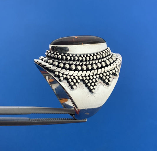 Stunning Sterling Silver 925 Cabochon Amber Statement Finger Ring Size 6