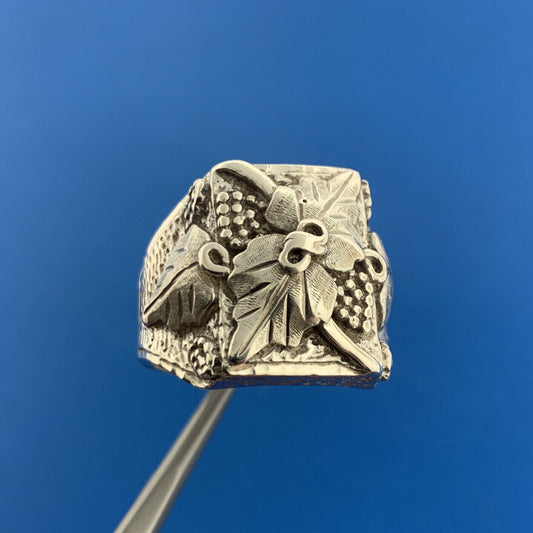 Retro Designer 925 Sterling Silver Grapevine Mens Statement Rectangle Dome Ring