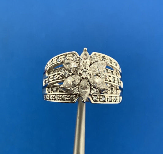 Designer 925 Sterling Silver Cubic Zirconia Floral Cluster Statement Band Ring