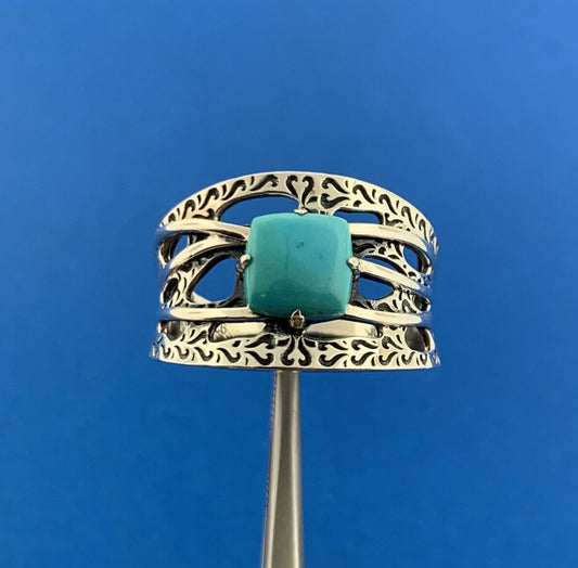 Designer DK Sterling Silver 925 Cabochon Square Blue Turquoise Ring Size 10