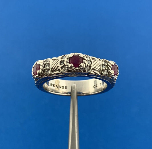 Judith Ripka 925 Sterling Silver Ruby July Anniversary Stackable Band Ring