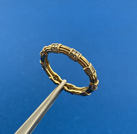 Designer Sterling Silver Vermeil Cubic Zirconia CZ Ribbed Stackable Band Ring