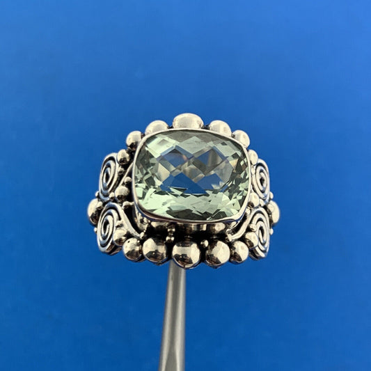 Designer BA Suarti 925 Sterling Silver Cushion Cut Green Amethyst Statement Ring