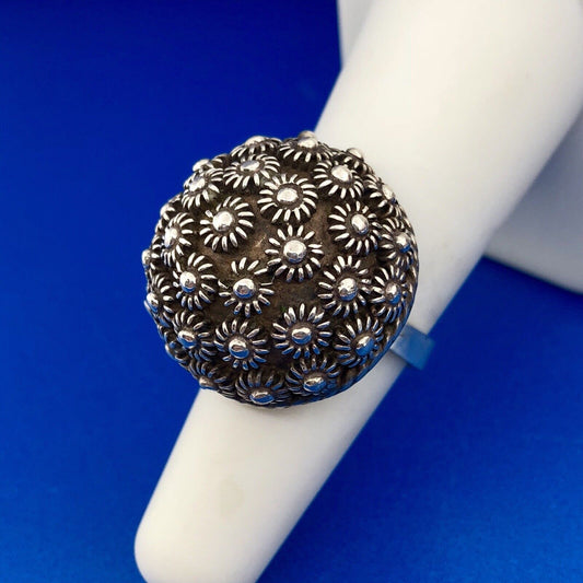 Vintage Taxco Mexico 925 Sterling Silver Floral Mushroom Cap Dome Statement Ring