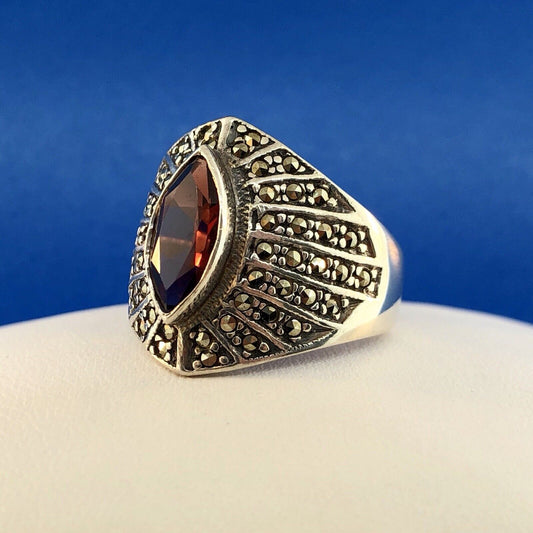 Vintage Elegant Sterling Silver 925 Garnet & Marcasite Encrusted Size 9.75 Ring