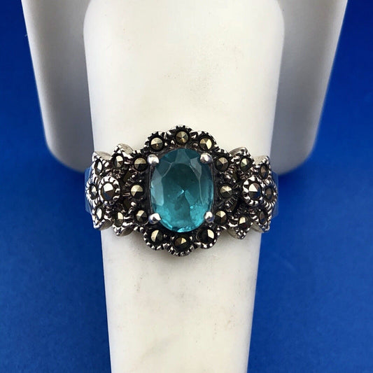 Vintage Sterling Silver 925 Blue Topaz Marcasite November Occasion Ring