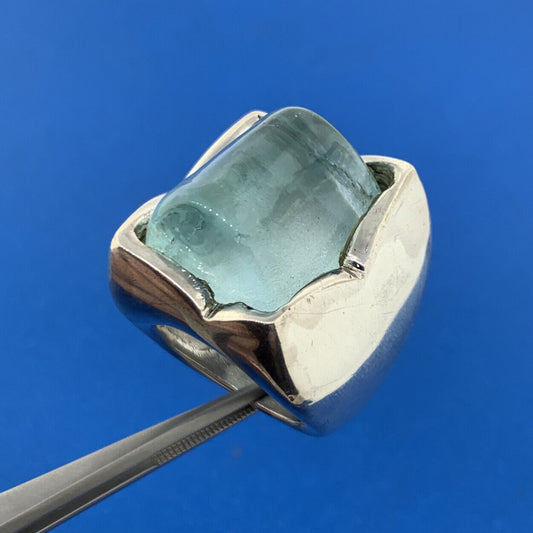 Designer Italy 925 Sterling Silver Bottle Art Glass Wide Statement Dome Ring