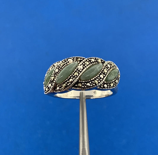 Designer NV 925 Sterling Silver Jade Marcasite Accented Cocktail Ring