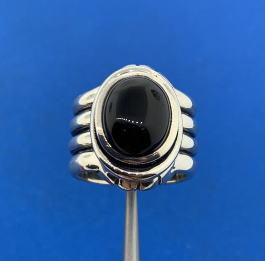 Designer 925 Sterling Silver Oval Black Onyx Cabochon Ribbed Statement Ring