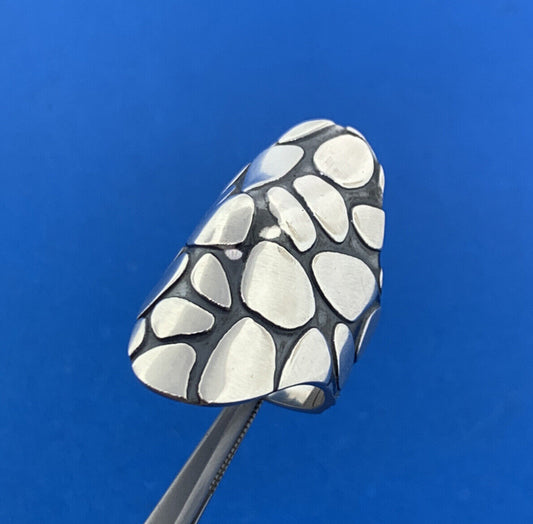 Designer Sterling Silver 925 Textured Diamond Cut Modernist Statement Dome Ring