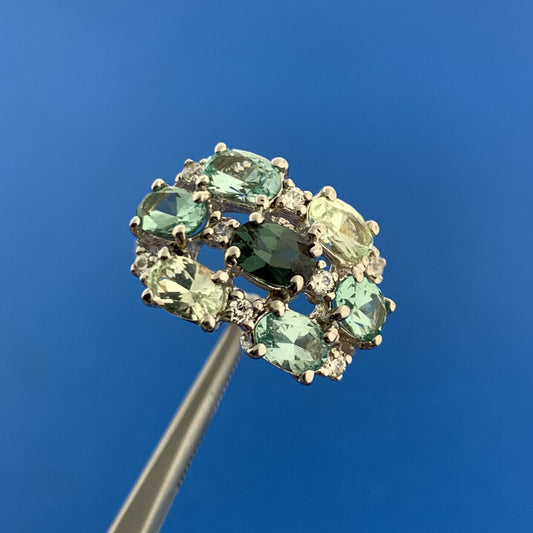 Joe Esposito ESPO Sterling Silver 925 Green Amethyst Quartz CZ Cluster Ring