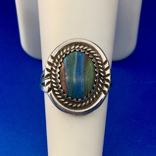 Vintage Southwestern Sterling Silver 925 Multi Colored Jasper Agate Concho Ring