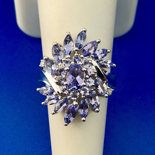 Stunning Designer JS 925 Sterling Silver Tanzanite Diamond Floral Cluster Ring