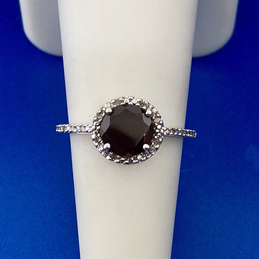 Designer 925 Sterling Silver Garnet Solitaire Diamond Halo January Occasion Ring