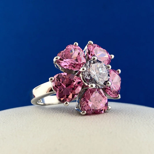 Nolan Miller Sterling Silver Faux Pink Sapphire & Amethyst Flower Designer Ring