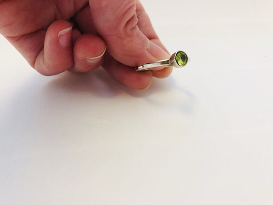 Designer Sterling Silver 925 Round Peridot Station Stackable Band Ring