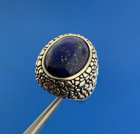 Whitney Kelly 925 Sterling Silver Oval Lapis-Lazuli Pebbled Statement Dome Ring