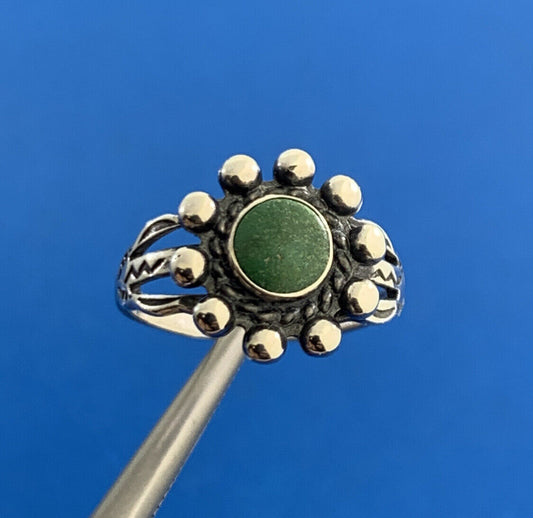 Vintage 925 Sterling Silver Green Turquoise Solitaire Floral Size 3.5 Ring
