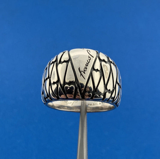 925 Sterling Silver Franco Pianegonda Diamond Cut Textured Link Wide Ring