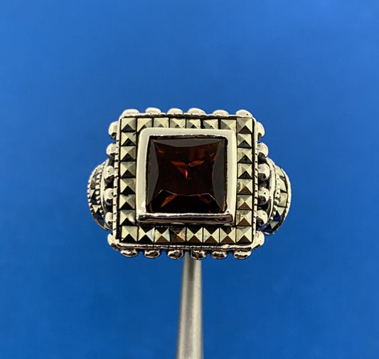 925 Sterling Silver Garnet Marcasite January Birthday Anniversary Ring