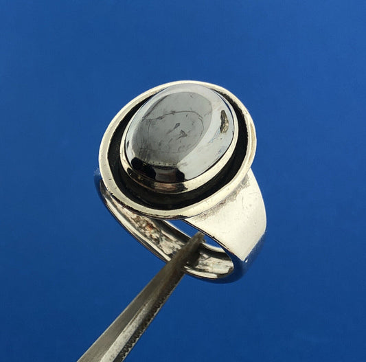 Mid Century Otto Grun Sterling Silver Stainless Steel Modernist Oval Dome Ring