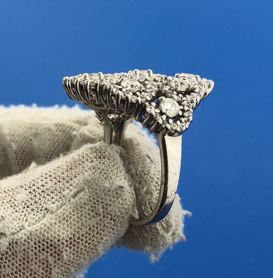 Stunning Sterling Silver 925 Sparkling CZ Openwork Floral Vine Ring Size 5.5