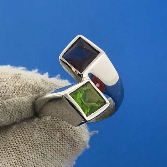 Stunning 925 Sterling Silver Chartreuse Amethyst Cubic Zirconia Modenist Ring