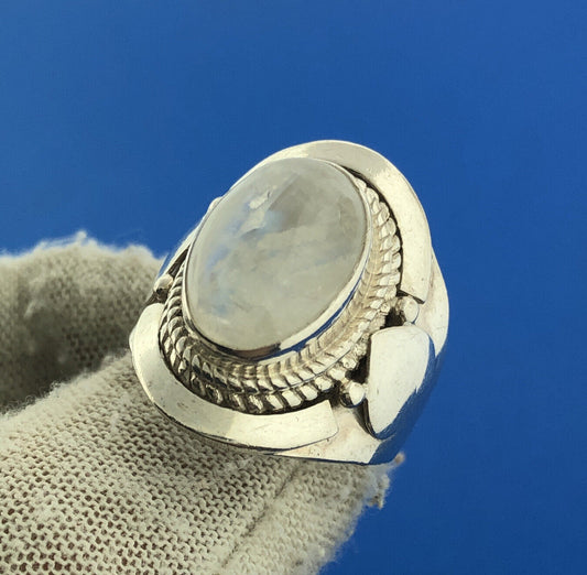 Vintage Sterling Silver 925 Rainbow Moonstone Statement Heart Dome Ring