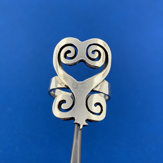 Vintage Abstract Modernist Artisan 925 Sterling Silver Heart Statement Ring
