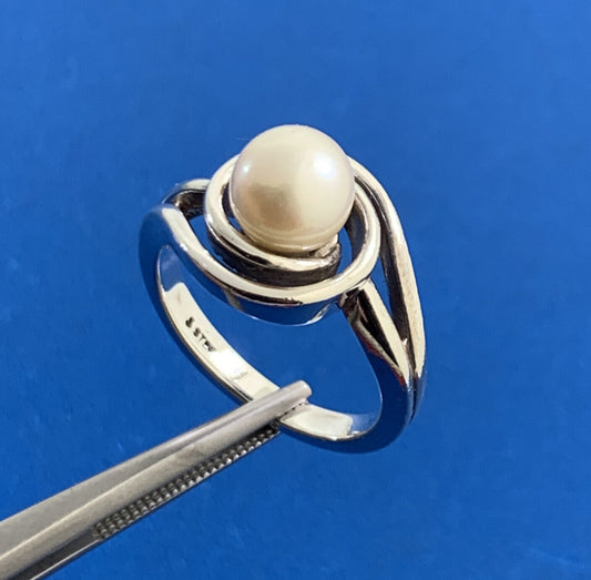 Designer 925 Sterling Silver Pearl Solitaire Modernist Twist Cocktail Ring