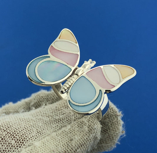 Designer Lee Sands Sterling Silver Pastel Mother of Pearl Inlay Butterfly Ring
