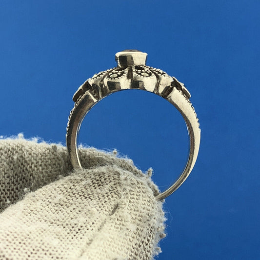 Estate 925 Sterling Silver Garnet Marcasite Flower January Birthstone Ring