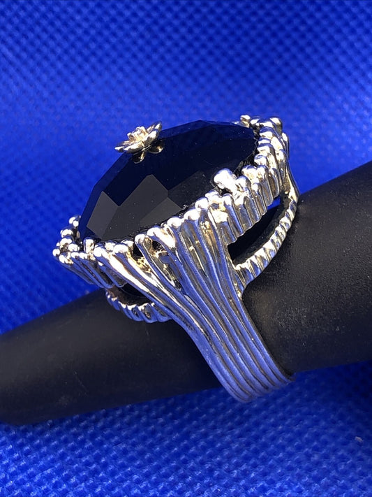 Designer Black Onyx 925 Sterling Silver Diamond Accent Dome Statement
