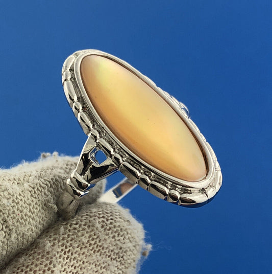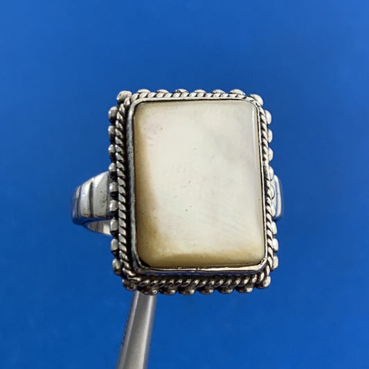 Vintage Mother of Pearl 925 Sterling Silver Rectangle Statement Ring