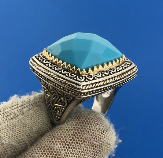Designer PK Sterling Silver Two Toned Faux Turquoise Scroll Statement Dome Ring