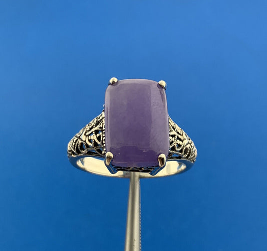 Designer CNA 925 Sterling Silver Purple Jade Jadeite Filigree Open Work Ring