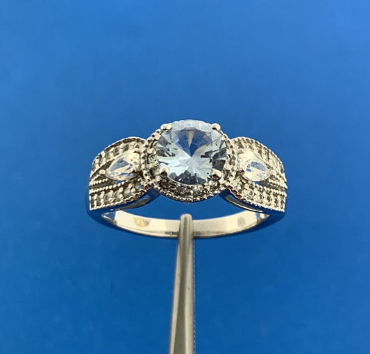 Radiant 925 Sterling Silver Cubic Zirconia CZ Solitaire W/Accent Engagement Ring