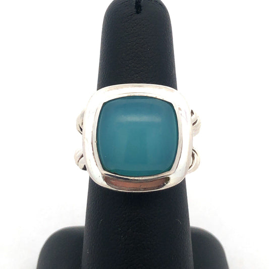 David Yurman 925 Sterling Silver Aqua Chalcedony Square Albion Statement Ring