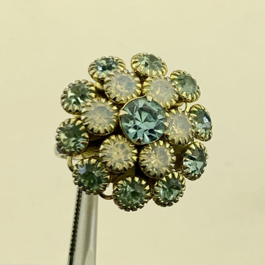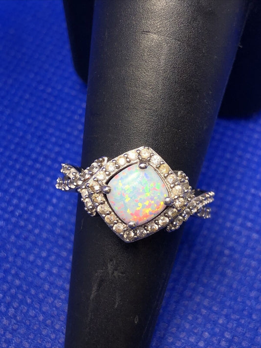 Designer SUN 925 Sterling Silver Opal Diamond Accented Size 6 Statement Ring