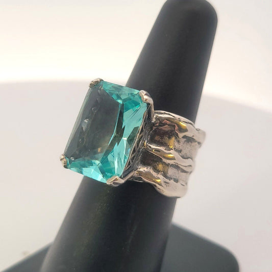 Designer 925 Sterling Silver Radiant Cut Blue Topaz Size 6.75 Wide Band Ring