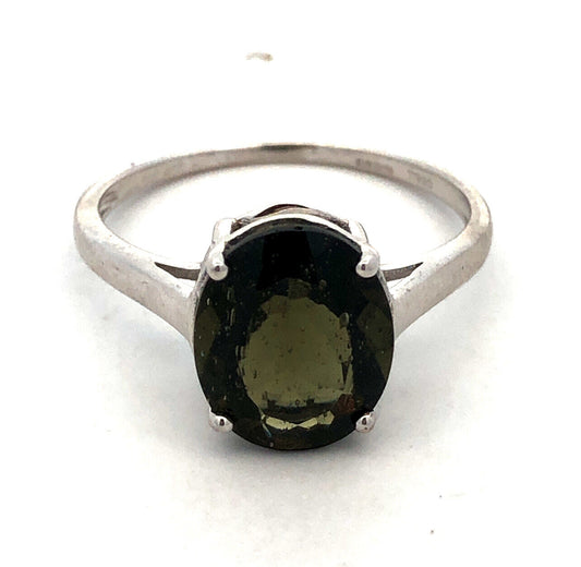 Designer TGGC 925 Sterling Silver Oval Green Tourmaline Solitaire Ring