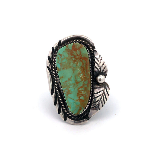 Benjamin Piaso Navajo 925 Sterling Silver Green Turquoise Squash Blossom Ring