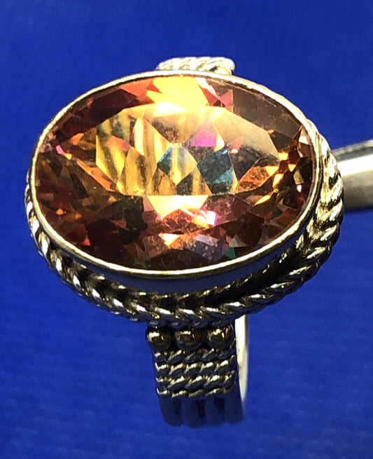 Designer Sterling Silver Oval Mystic Topaz Ribbed Twist Statement Cocktail Ring