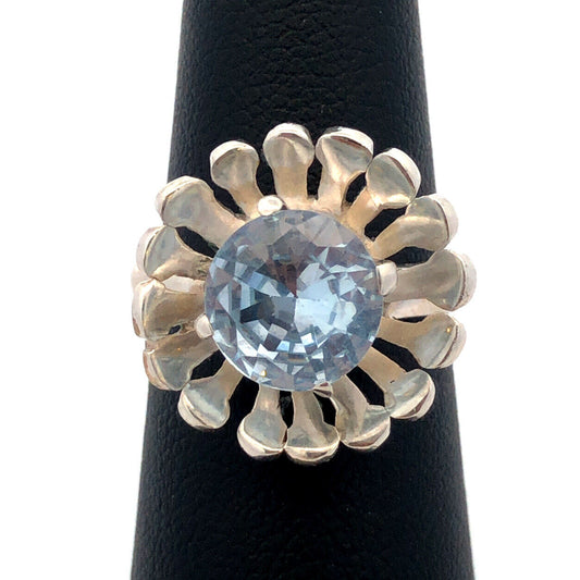 Vintage Designer Mexico 925 Sterling Silver Round Tanzanite Flower Cocktail Ring