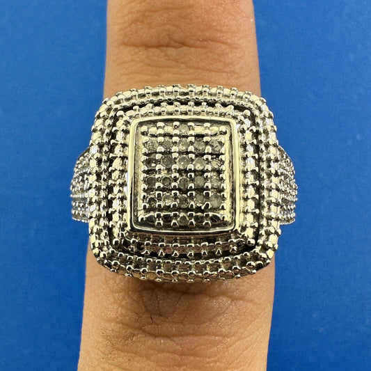 Designer HN 925 Sterling Silver Mens Square Diamond Cluster Statement Ring